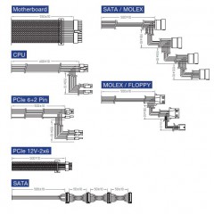 | MB 20+4 PIN | CPU 8 PIN | CPU 4+4 PIN | PCIe 12V-2x6 | PCIe 6+2 PIN | SATA | MOLEX | FLOPPY | |
