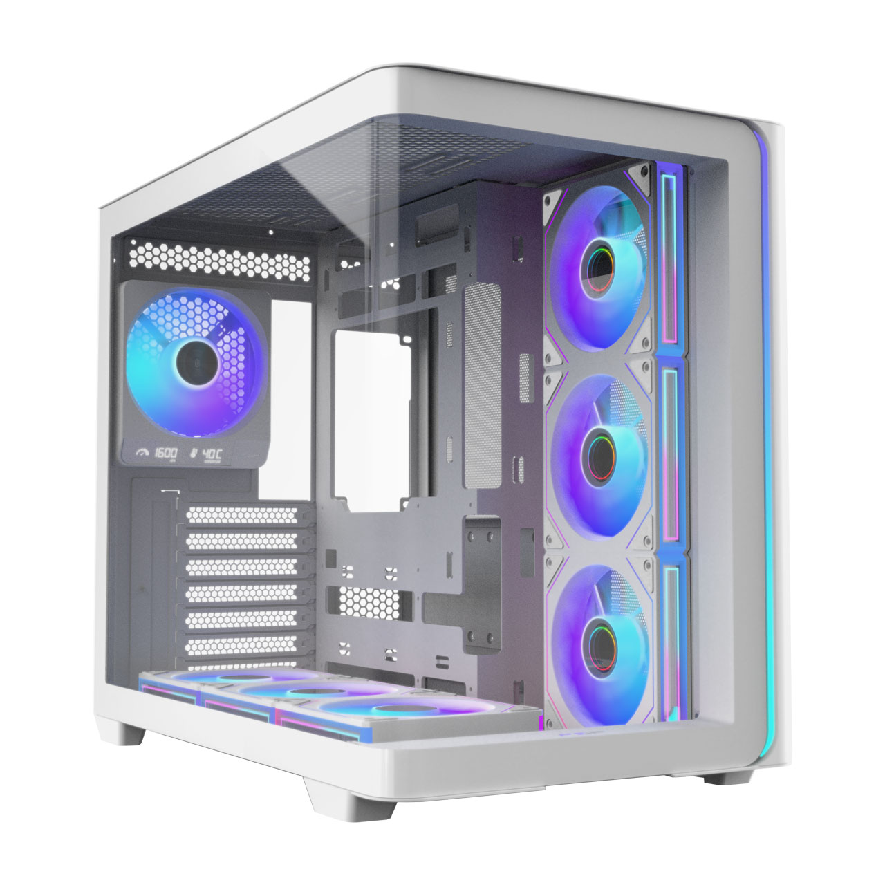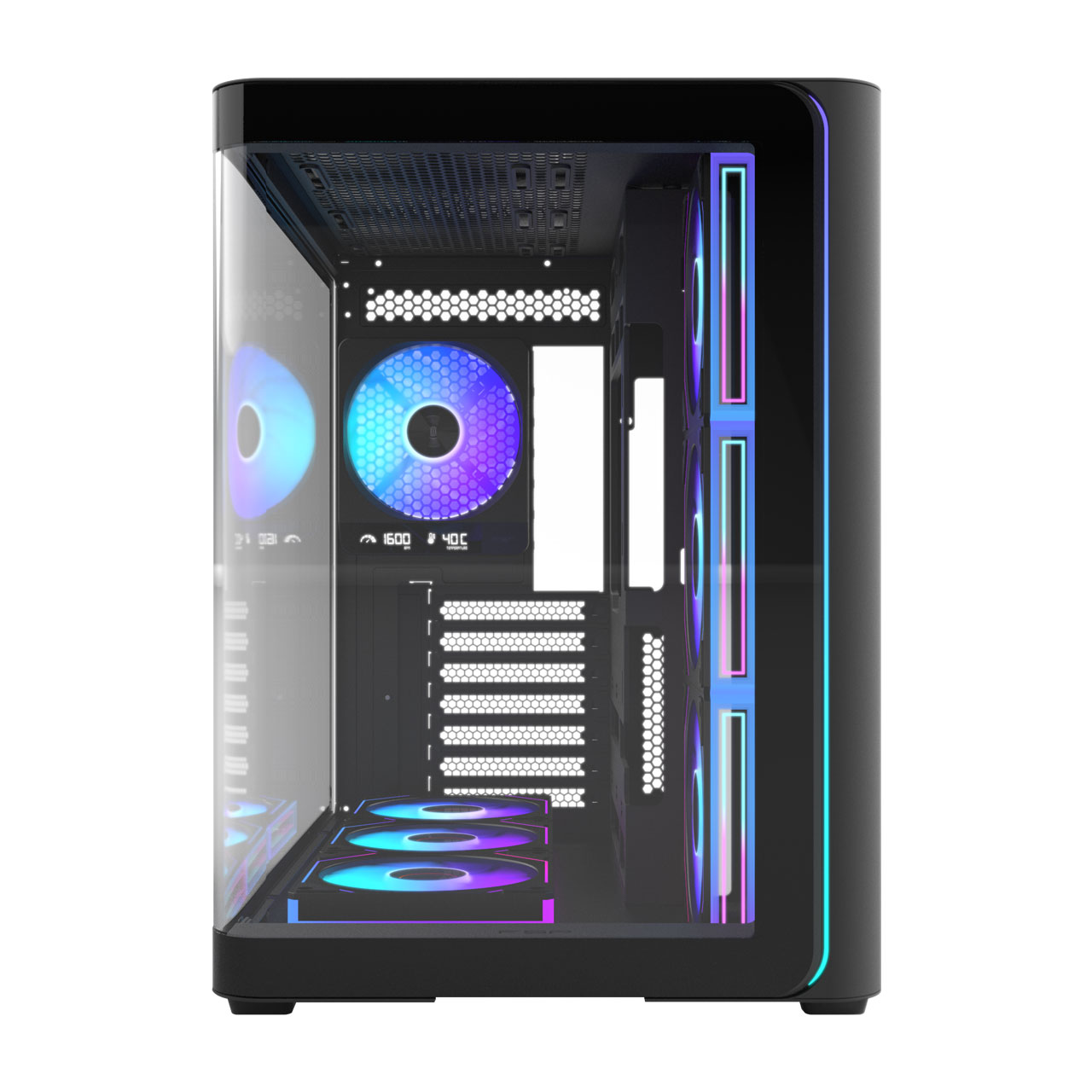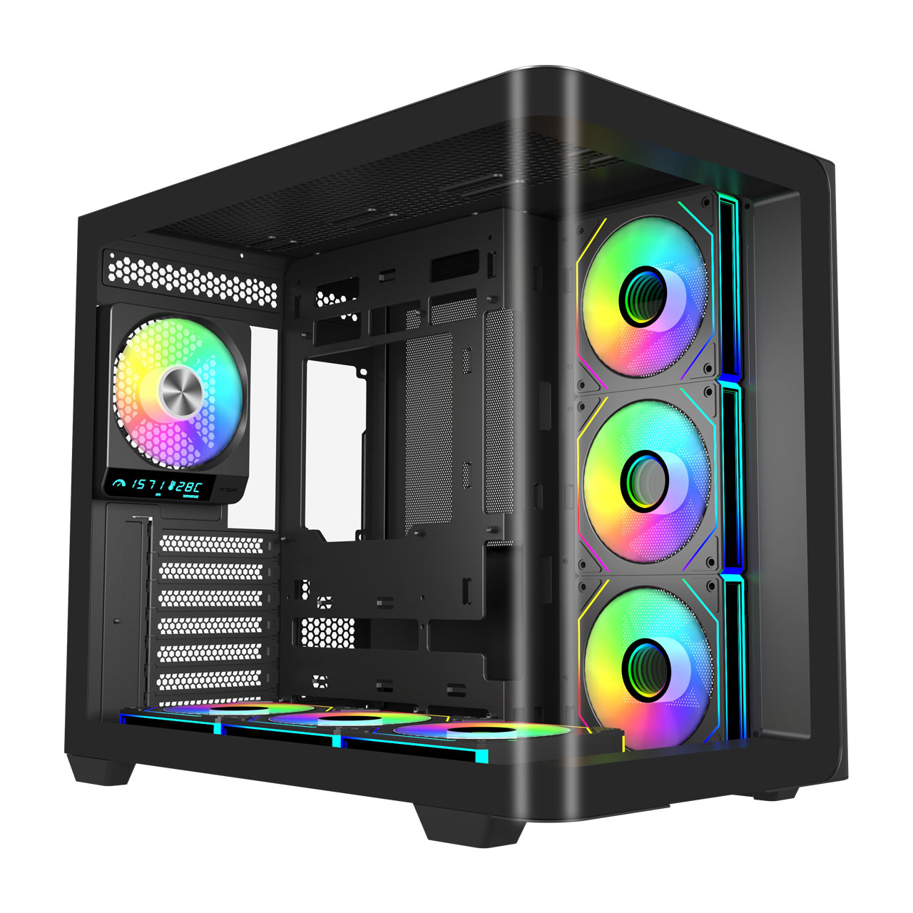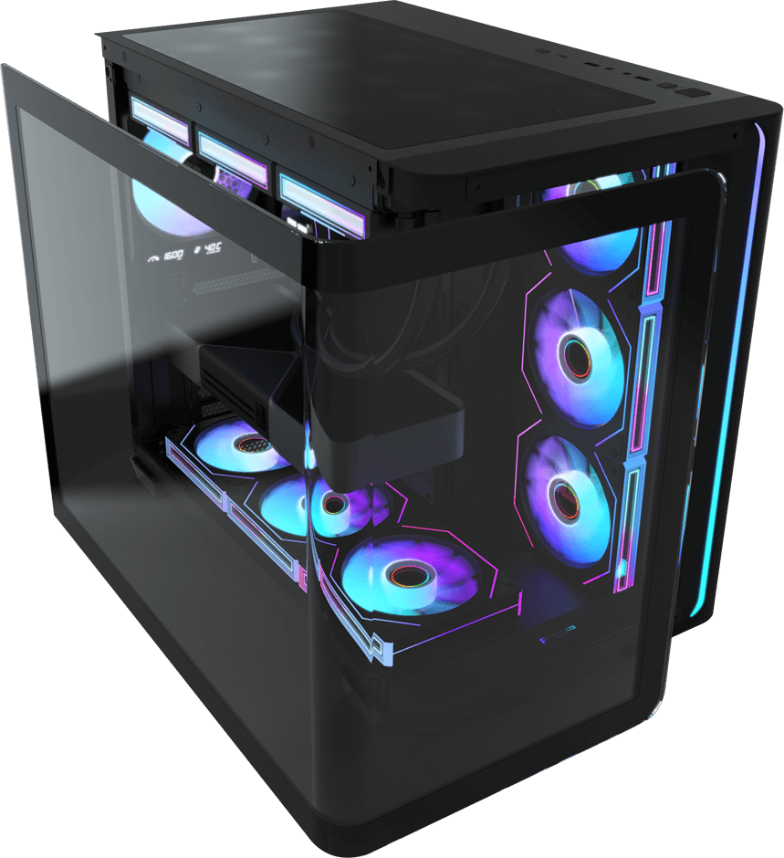 The M580 PRO features a complete curved tempered glass panel, offering an panoramic view from front to side, delivering a seamless, perfect visual immersion.