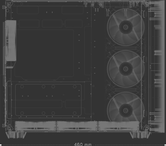 | Fan&Water Cooler Support | Side: 120mm x 3 or 140mm x 2 or 360mm Radiator Top: 120mm x 3 or 140mm x 2 or 360mm Radiator Bottom: 120mm x 3 or 360mm Radiator Rear: 120mm x 1 |