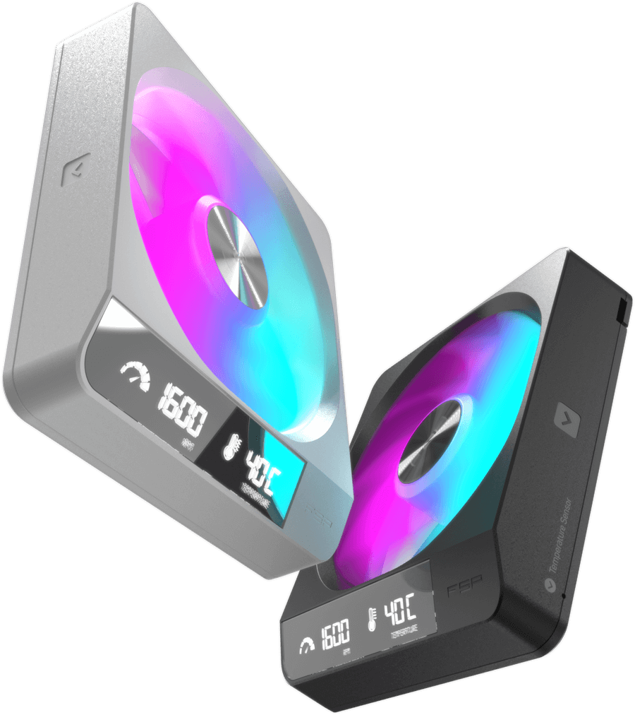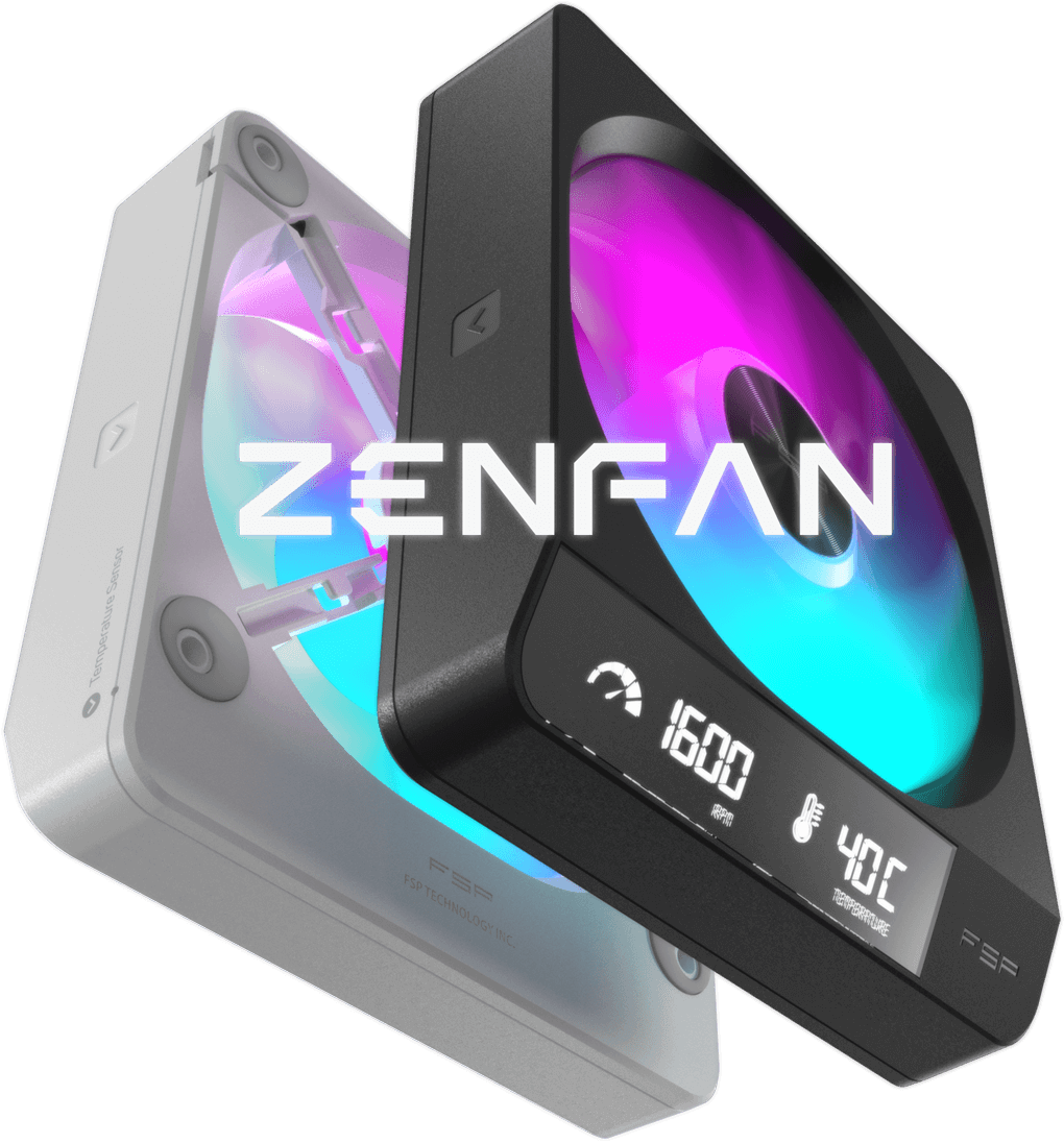 ZENFAN offers both black and white variants with a finely textured matte surface, blending discreetly into any setup. The integrated display provides clear temperature and fan speed monitoring, functionality meets understated elegance.